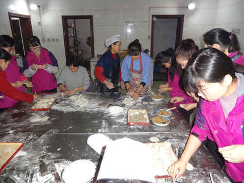 12月21日,又到了冬至吃餃子的節(jié)日,公司綜合管理部精心謀劃,組織往年包餃子能手和新進(jìn)員工代表在公司職工食堂繼續(xù)開展一年一度的包餃子活動。各路高手濟(jì)濟(jì)一堂,摩拳擦掌,包餃子比賽拉開了帷幕。 早上8點(diǎn)半,各路高手來到食堂操作間,在食堂管理員宋順明的安排下按照各自分工迅速進(jìn)入到工作狀態(tài),大家分別在自己的拿手項目上各顯神通:搓面球、搟面皮、包餃子、擺餃子。有的用料十足,包出的餃子個大肚圓,彰顯出北方的大氣與豪爽;有的大小均勻,包出的餃子精致美觀,呈現(xiàn)出南方的清秀與靈動。元寶餃子、月牙餃子、大頭娃娃餃子……大家歡樂地交流,認(rèn)真地操作,時而探討心得,時而過招切磋??粗约喊娘溩?,大家的臉上都洋溢著幸福與自豪。有的說你包的沒有我的好看,有的說你咋包的沒有我快,食堂里充滿了歡聲笑語,成了一片歡樂的海洋。 中午開飯前,包好的餃子整整齊齊摞了有十幾大籠,足夠公司員工敞開肚吃,看著全體職工一邊吃著熱氣騰騰的餃子一邊聊著天,參加包餃子活動的各路高手心里暖暖的,他們用自己辛勤的勞動給這個寒冷的冬季增添了溫暖的氣息。