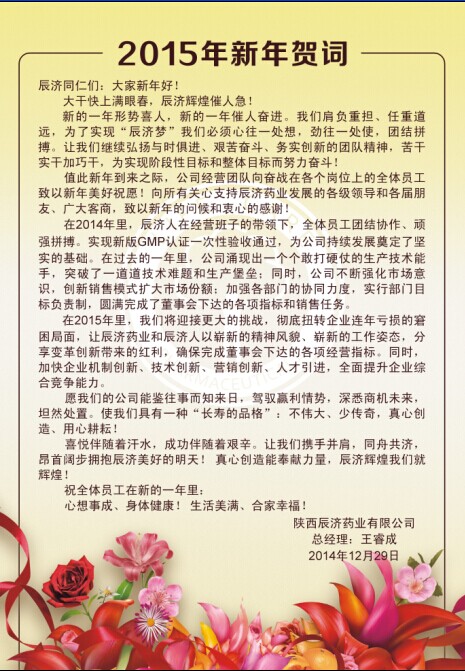 新年新氣象--辰濟藥業(yè)2015年王總新年賀詞