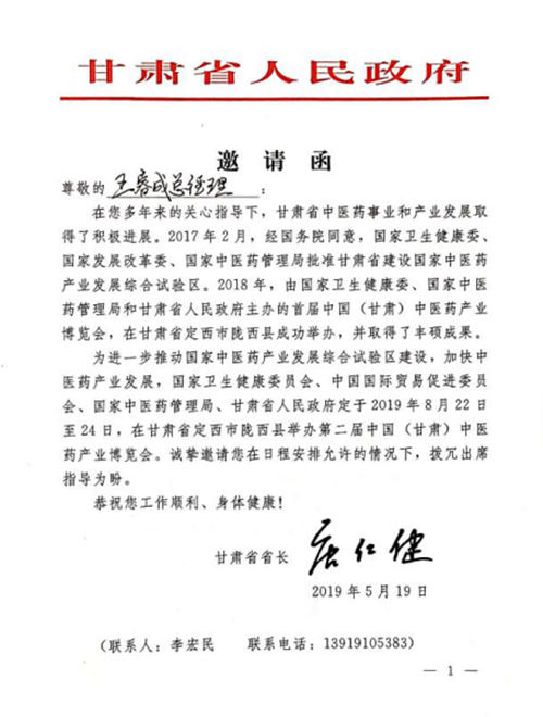 2019年7月4日下午,甘肅省定西市各級(jí)領(lǐng)導(dǎo)蒞臨陜西紫光辰濟(jì)藥業(yè)有限公司,在座談會(huì)上,定西市人大常委副主任王成文給王睿成總經(jīng)理親手遞交了甘肅省人民政府唐仁健省長(zhǎng)親筆簽名的邀請(qǐng)函,誠(chéng)摯邀請(qǐng)我司總經(jīng)理王睿成參加于2019年8月22日至24日在甘肅省定西市隴西縣舉辦的第二屆中國(guó)(甘肅)中醫(yī)藥產(chǎn)業(yè)博覽會(huì)。 甘肅中藥材資源得天獨(dú)厚,是全國(guó)重要的中藥材主產(chǎn)區(qū)和道地藥材生產(chǎn)地之一,素有“千年藥鄉(xiāng)”“天然藥庫(kù)”之稱。紫光辰濟(jì)藥業(yè)將以藥博會(huì)為契機(jī),加強(qiáng)與中醫(yī)藥產(chǎn)業(yè)同仁的合作與交流,提升紫光辰濟(jì)的品牌影響力,以實(shí)際行動(dòng)進(jìn)一步釋放中醫(yī)藥產(chǎn)業(yè)潛力和活力,彰顯中醫(yī)藥的多重價(jià)值,為推動(dòng)健康中國(guó)建設(shè)、構(gòu)建人類命運(yùn)共同體作出新的更大貢獻(xiàn)。 我司總經(jīng)理王睿成對(duì)定西市政府人民政府各級(jí)領(lǐng)導(dǎo)的到來(lái)表示誠(chéng)摯的歡迎,感謝甘肅省人民政府的邀請(qǐng),并表示紫光辰濟(jì)藥業(yè)將聯(lián)合寶雞市中醫(yī)藥產(chǎn)業(yè)聯(lián)合會(huì)各會(huì)員單位以最大的誠(chéng)意和行動(dòng)參加此次盛會(huì),共同推進(jìn)中醫(yī)藥產(chǎn)業(yè)的全面發(fā)展,預(yù)祝第二屆中國(guó)(甘肅)中醫(yī)藥產(chǎn)業(yè)博覽會(huì)圓滿成功!