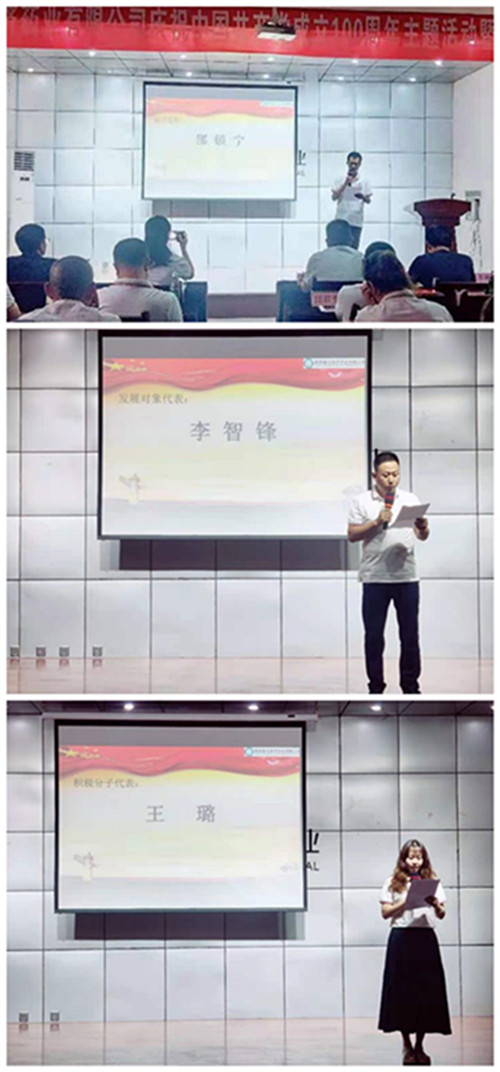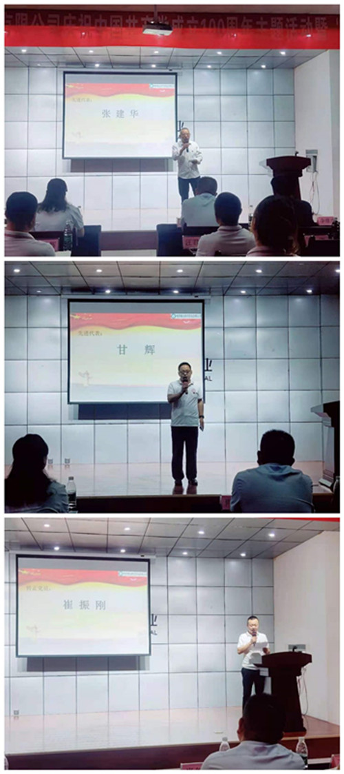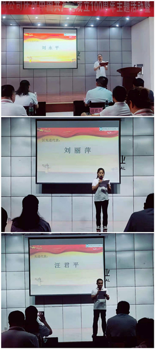 頒獎結(jié)束后,轉(zhuǎn)正黨員:崔振剛、邵鎖寧進(jìn)行了承諾表態(tài)發(fā)言;金臺區(qū)優(yōu)秀共產(chǎn)黨員:劉永平、劉麗萍;公司優(yōu)秀共產(chǎn)黨員:汪君平、張建華、甘輝;黨員積極分子代表:李智鋒、王璐,紛紛對自己近年的工作和成績進(jìn)行了總結(jié),并講述了自己眼中共產(chǎn)黨為祖國帶來的變化與發(fā)展,表示對今后共產(chǎn)黨帶領(lǐng)發(fā)展的中國充滿了信心和期望。