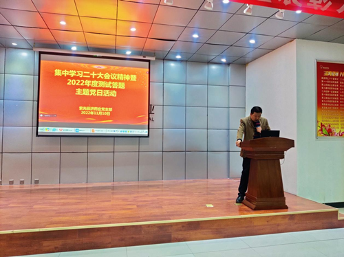 黨的二十大會(huì)議剛剛閉幕,全社會(huì)就掀起學(xué)習(xí)二十大會(huì)議精神和宣講的高潮。為了深刻領(lǐng)會(huì)黨的二十大會(huì)議精神,全面推進(jìn)公司黨建融合工作走向深入,根據(jù)山西建投集團(tuán)黨委工作部署要求,紫光辰濟(jì)藥業(yè)黨支部于2022年11月10日在公司三號(hào)會(huì)議室組織開展了黨員干部集中學(xué)習(xí)黨的二十大會(huì)議精神暨2022年度測試答題主題黨日活動(dòng),公司全體黨員、管理干部、入黨積極分子共計(jì)四十多人參加了此次學(xué)習(xí)測試活動(dòng)。 集中學(xué)習(xí)環(huán)節(jié),公司黨支部王靜書記以視頻形式給參會(huì)人員傳達(dá)了黨的二十大會(huì)議精神,王靜書記細(xì)心制作的PPT吸引了在座人員的學(xué)習(xí)熱情,精心提煉的內(nèi)容讓大家對(duì)二十大會(huì)議精神理解的更加立體和深刻。通過王靜書記的講解,大家更加堅(jiān)定了永遠(yuǎn)聽黨話、永遠(yuǎn)跟黨走的初心使命,在各自的工作崗位上,發(fā)揮自己的聰明才智,為黨和企業(yè)積極工作,實(shí)現(xiàn)個(gè)人價(jià)值的最大化,將企業(yè)建設(shè)和發(fā)展的更好,為建設(shè)中國特色社會(huì)主義強(qiáng)國做出自己應(yīng)有的貢獻(xiàn)。