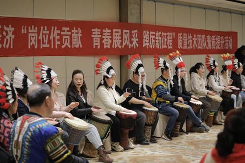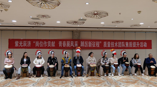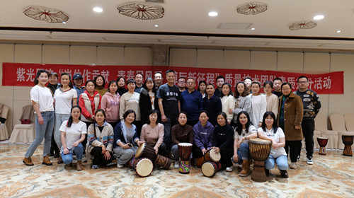 五四青年節(jié)來(lái)臨之際,陜西紫光辰濟(jì)藥業(yè)黨支部組織公司質(zhì)量監(jiān)控部、技術(shù)中心、行政部等部門(mén)黨員、管理干部、青年員工40多人在寶雞艷陽(yáng)天會(huì)議大廳開(kāi)展“崗位作貢獻(xiàn)、青春展風(fēng)采、踔厲新征程”質(zhì)量技術(shù)團(tuán)隊(duì)素質(zhì)提升團(tuán)建活動(dòng)。 活動(dòng)專(zhuān)門(mén)邀請(qǐng)了寶雞市非洲鼓藝術(shù)團(tuán)的老師們進(jìn)行現(xiàn)場(chǎng)講授,大家在老師的悉心授課下逐漸掌握了非洲鼓的基本演奏技巧,在整齊統(tǒng)一的鼓聲中感受到非洲鼓的熱情和奔放,授課結(jié)束后,藝術(shù)團(tuán)老師們的集體精彩表演和表演中對(duì)非洲鼓的完美演繹和詮釋?zhuān)瑢⒈敬螆F(tuán)建活動(dòng)推向高潮。